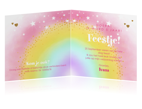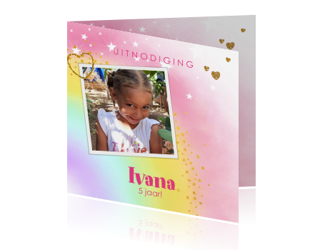 Uitnodiging meisje regenboog sterren hartes en foto from heidysign.nl Maybe you would like to learn more about one of these? Check spelling or type a new query. We did not find results for: